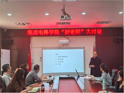 为深入贯彻落实新时代高校教师的使命与担当,11月4日,集成电路学院于龙湖校区举办“好老师”大讨论专题活动。会议聚焦育人根本任务,旨在通过经验分享与思想碰撞,凝聚育人共识,夯实高素质集成电路人才培养基础。学院全体教职工与会,会议由我校学术副校长、集成电路学院院长马建国主持。